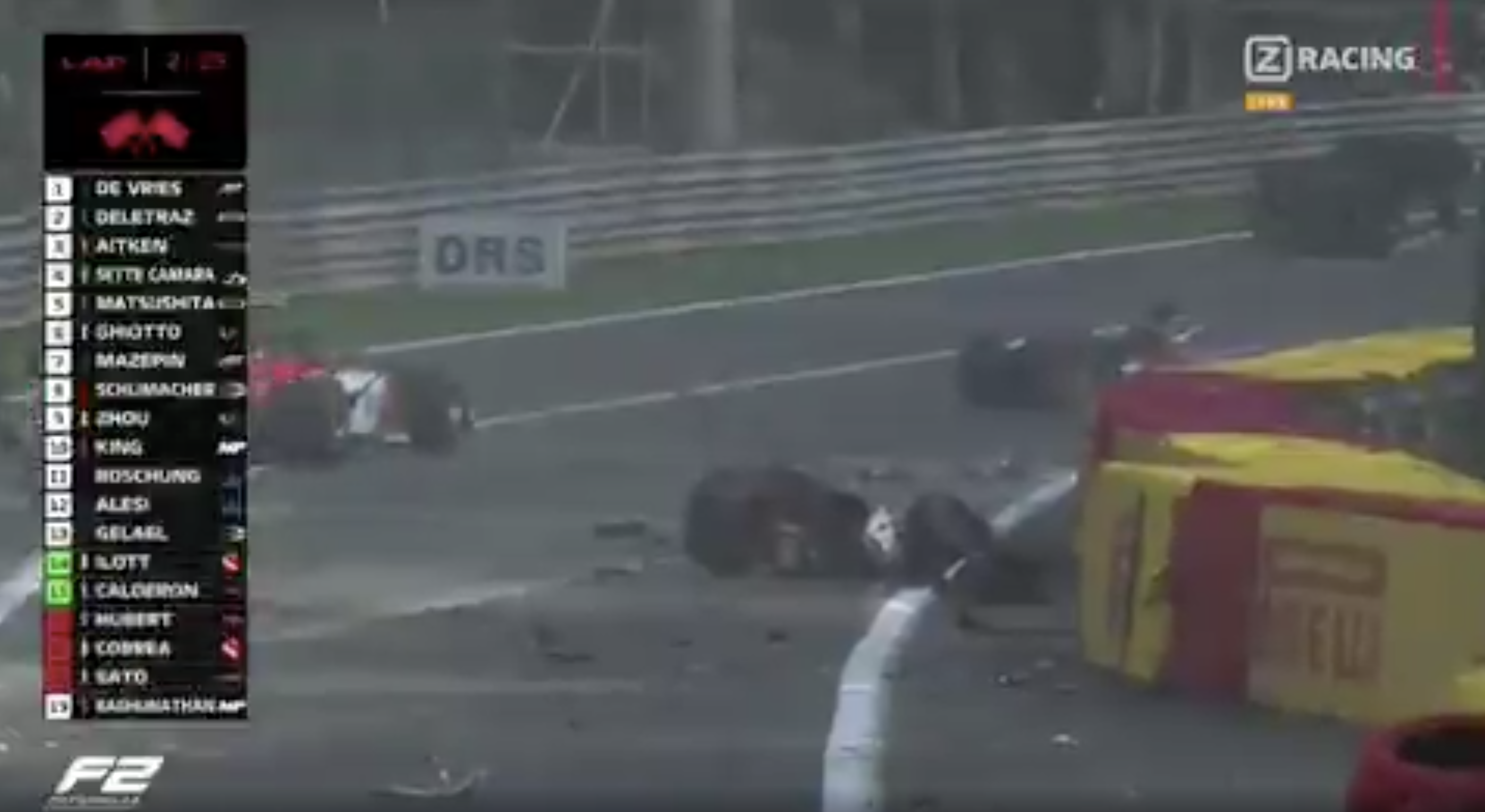 Megacrash video. F2-coureur Hubert (22) dood