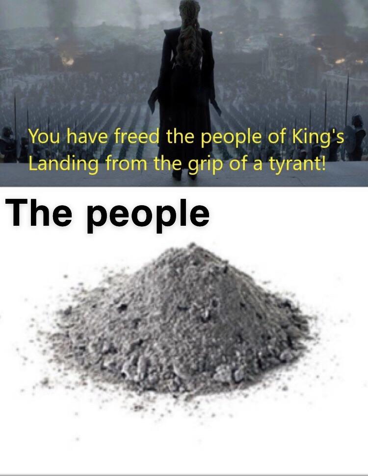 Dany ging dark en moest dus gestopt worden. Het was eigenlijk de laatste cliff hanger: wie zou de trekker overhalen? Het werd Jon, en eigenlijk op een heel cliche manier, tijdens een omhelzing. De happy ever after die volgde, met Bran op de troon, had ook niet het gewicht waar we op hoopten, al is de boel waarschijnlijk wel in goede handen zo. Tyrion Hand of the King, en geen psychopaat als koning.