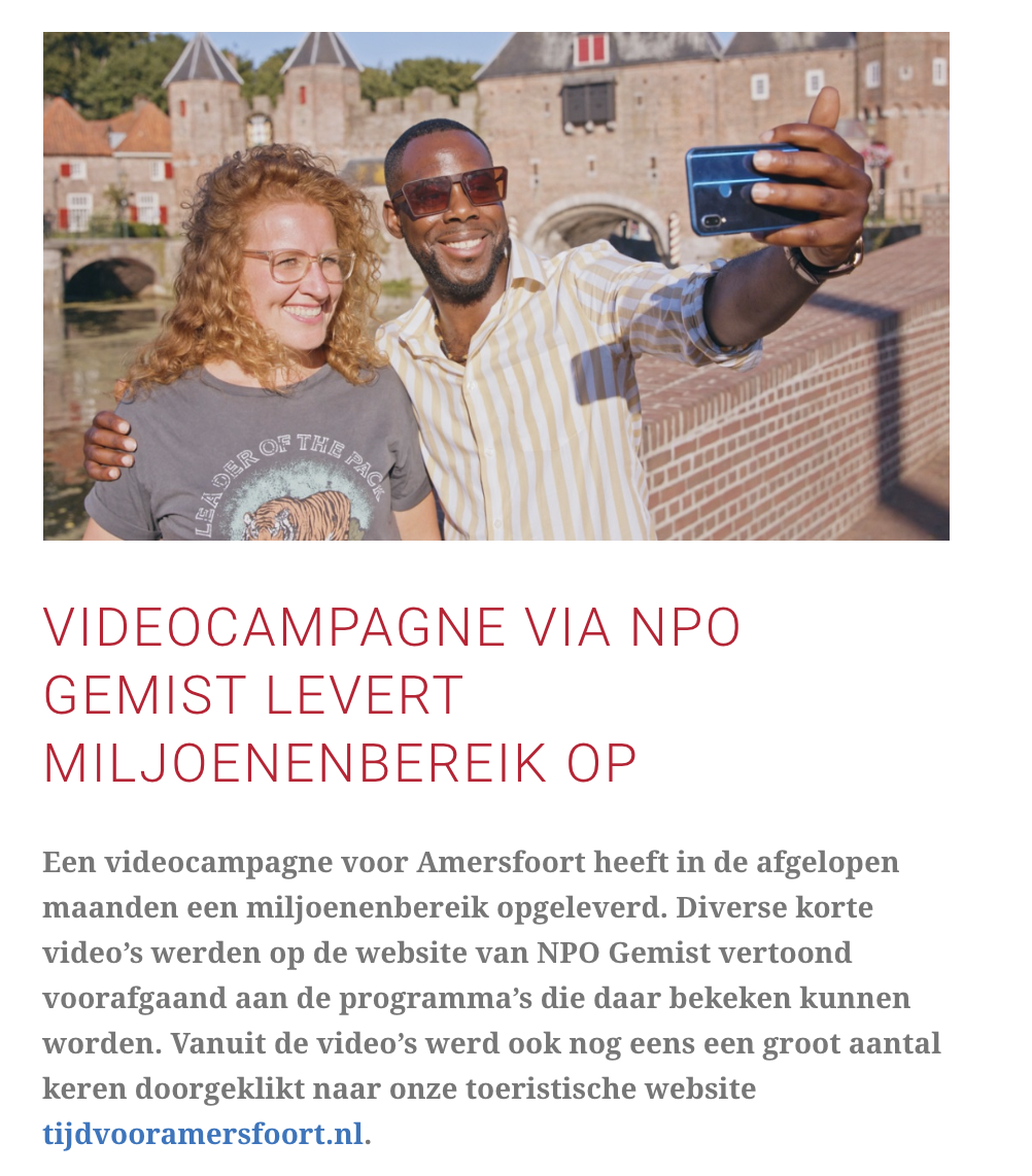 'Morning dawn. Light shines upon us (...) Searching for our voyage of love and joy' en dat dan in combinatie met Amersfoort. Nou dat treft want dat was precies het eerste waar wij aan dachten bij Amersfoort, nog vóór het treinstation en het feit dat de jongste inwoner 42 jaar is. En: 'Explore the unexplored. Laughing. Walking. Running.' Echt helemaal Amersfoort, en het eindigt met het zwaar inspirerende 'never stop going'. Deze volstrekt irrelevante crack zit dus voor alle programma's op NPO Gemist, precies waar de doelgroep zich bevindt. Geef degene die dit bedacht heeft alsjeblieft een flinke salarisverhoging want wij wanderers hebben zin always on our way te gaan, richting Amersfoort.