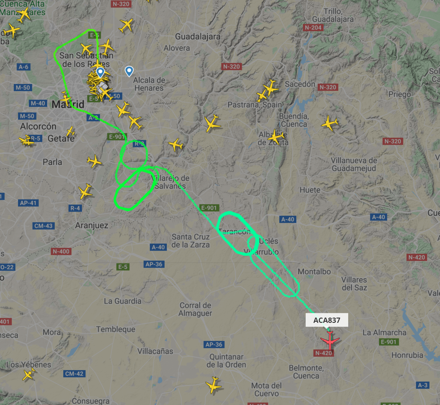 LIVE Air Canada #AC837 to Toronto is burning fuel before before returning to Madrid due to a technical issue https://t.co/mkCQ2NqWmL pic.twitter.com/xjKaBmrh2X