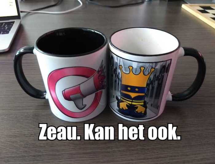 Er is iets verrot in de Staat der Nederlanden. En dat is de Rijksambtenaar. En dan met name de ontzettende overheidssmeerberen en staatsviespeuken die te beroerd zijn om hun koffiebekertjes netjes in de koffiebekertjesverzamel-unit te werpen. Gadverdamme. Koffiebekertjes met kauwgom, koffiebekertjes met wikkels van Snickers en Twixen erin, koffiebekertjes met half afgekloven klokhuizen erin - bwehg, koffiebekertjes met nootjes (!). Wat zijn onze rijksambtenaren toch verschrikkelijke ransapige smeerkezen. De hele dag vreten en kanen tijdens het weglakken van WOB-documenten en het wegmaken van fotorolletjes en afluistertapes, en maar de rotzooi in het koffiebekertje droppen. Maar liefst 85 MILJOEN koffiebekertjes moesten de verbrandingsoven in wegens ranzig vuillakkend raamambtenarengedrag. 85 miljoen! Dat zijn minstens 1500 dode ijsberen, 72 gesmolten gletsjers, 5 cm zeespiegelstijging en 88 fijnstofdoden, per jaar. Wat een schande. Zelfs die hufters van GeenStijl hebben herafwasbare milieumokken! Wij. Eisen. Maatregelen.