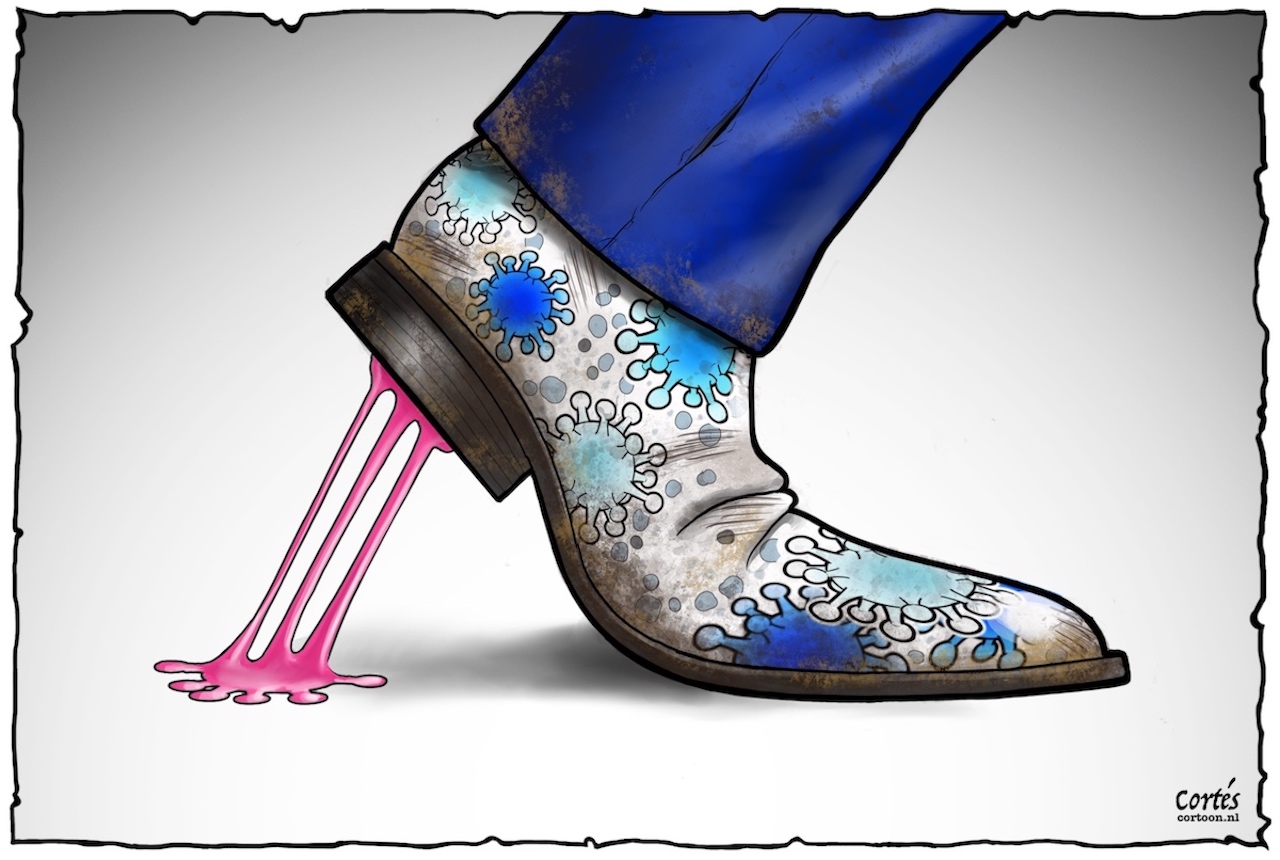 Transparantie vertrapt onder opvallend gekleurde schoenen