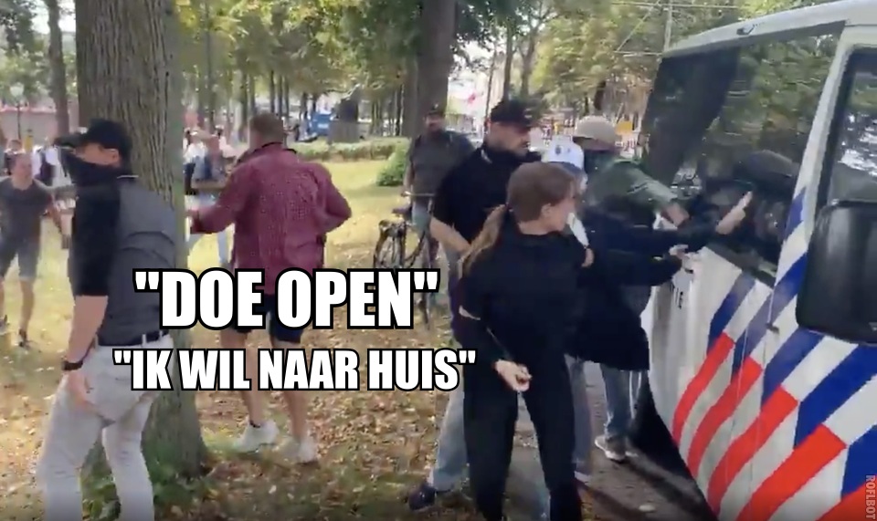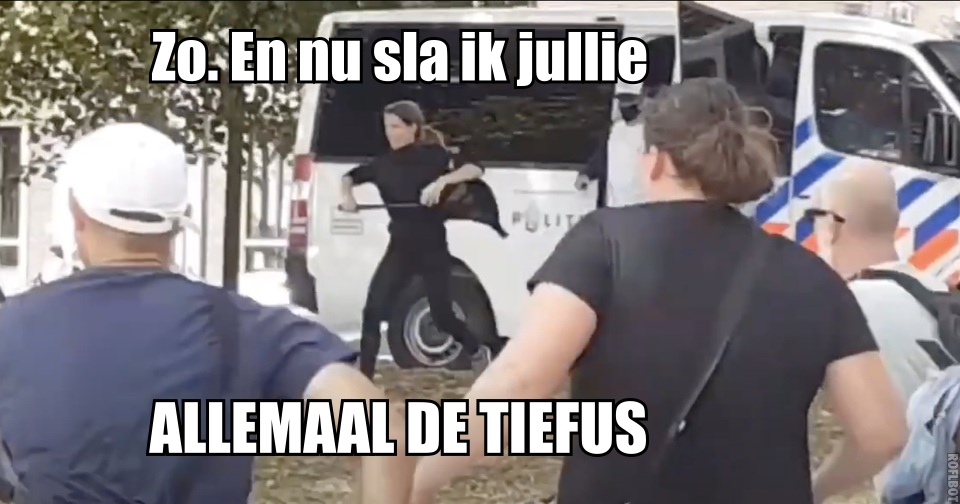 Jajaja, die mensen doen ook maar hun werk en #teampliesie & #klappenvoorhulpverleners enzo. Hiero meer duiding. In het Algemeen Dagblad een interview met cameraman Rene van Regio15 die de rare agressieve rellen van dichtbij meemaakte. "Nee. Ik loop echt al wel een tijdje mee. Er was hier sprake van heel agressief gedrag.” Een politiewoordvoerder zegt dat de politie alle filmpjes nog bekijkt en ook haar optreden van die dag zal evalueren. Als de Arrestatie Eenheid weer enigszins bij zinnen is, evalueer die coronaspuger met het witte petje (op 14 seconden) ook even. Morgen wederom demo. Gezellig.