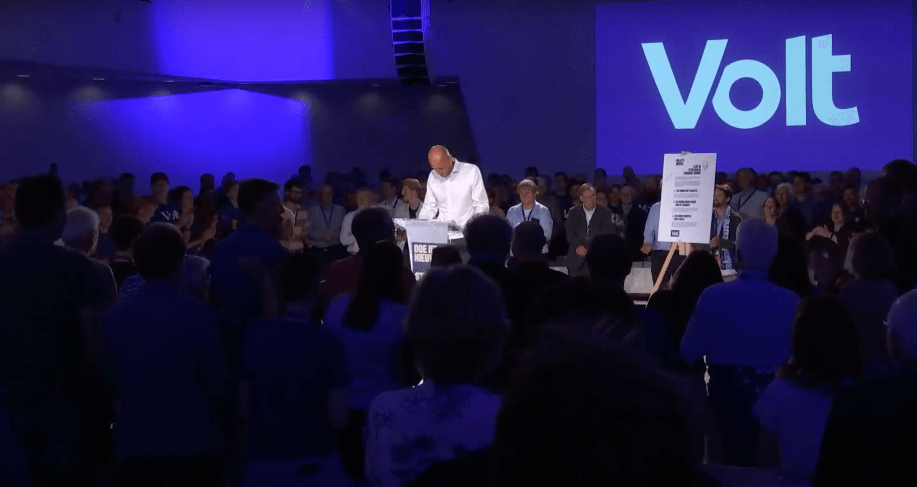 Video. Hotemetoot VOLT manifesteert verkiezingswinst middels merkwaardig opzweepritueel tijdens partijcongres