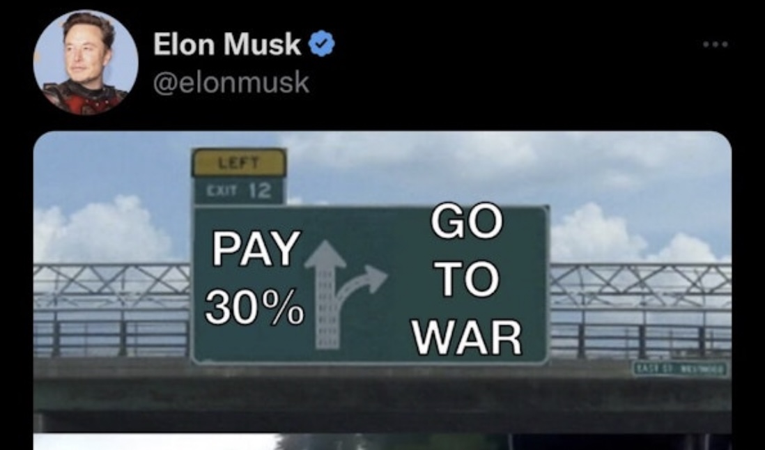 Elon versus de 1/2 van de duopolie (Google is de andere helft). Onderstaande tweet is overigens weer verwijderd lol
