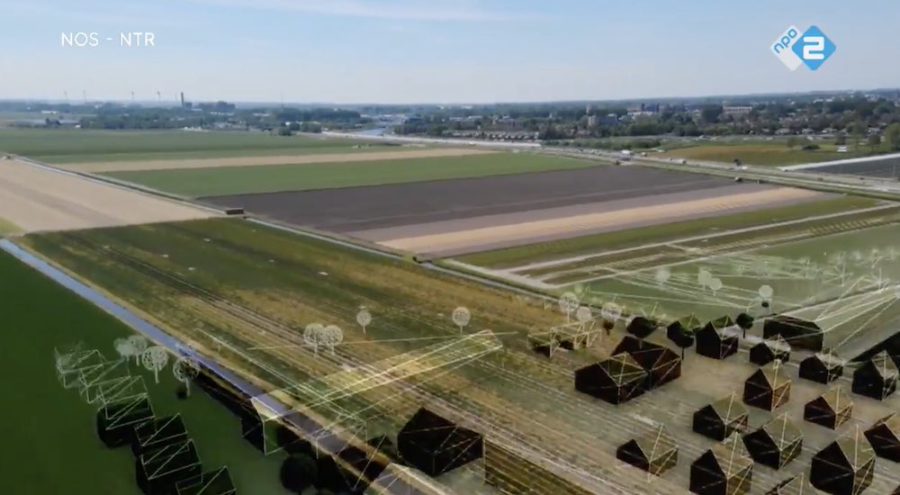 Mooi toch? Nederland. Dorp in de verte. Weilanden vol grutto, snip en kievit. Akkers met aardappels voor demense, snijmaïs voor dekoeie, uitjes erbij en wat tulpjes voor de export. Grasland met vee. Strookie bloemen langs de akkerranden voor de zoembeestjes. Landweggetjes voor de Eenzame Fietser die kromgebogen over zijn stuur tegen de wind zichzelf een weg baant. En dan in de winter schaatsen over de slootjes, en dan koek & zopie halen bij boer Sywert die probeert een centje bij te verdienen. Rij de Randstad uit en Dit Nederland is er nog steeds. Maar niet als het aan Nieuwsuur ligt. Daar hadden ze gisteravond een jubelende alsook schokkende animatie Hoe Nederland Te Vernielen door 1 miljoen huizen te bouwen in 10 jaar tijd. Randstedelijk Landschapsvandalisme na de break.