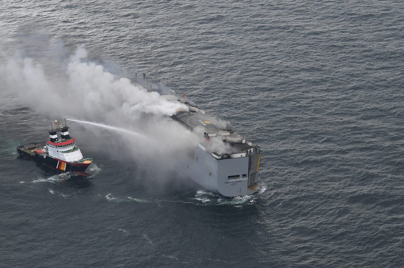Brandend schip Ameland brandt stabiel, elektrische auto explodeerde