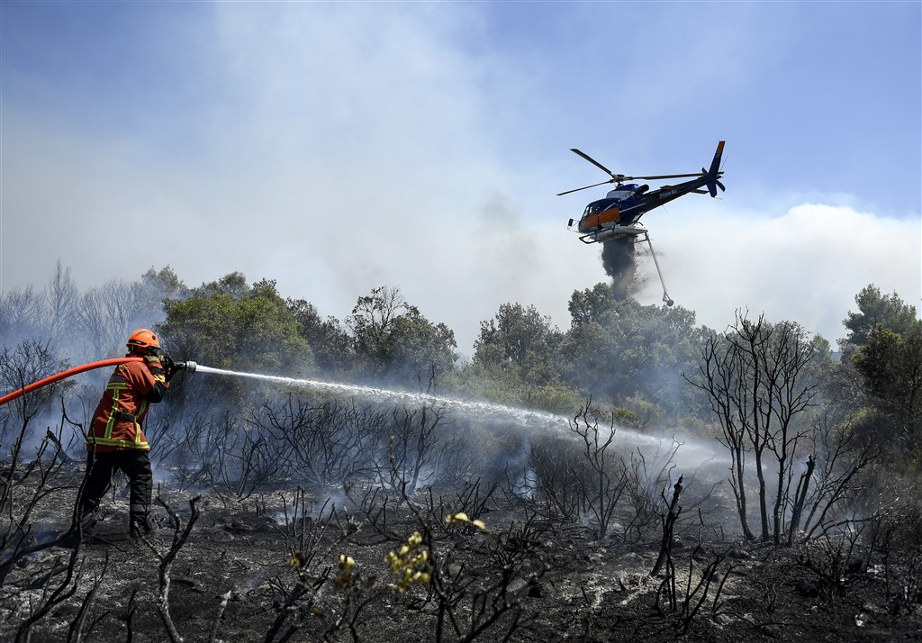 Weet u nog die bosbranden die het nieuws domineerden voordat Afghanistan jaloers werd en alle aandacht opeiste? Die zijn dus nog niet weg. Terwijl wij wegsukkelen in een festivalloze zomer vol deprimerende neerslag, kampt Zuid-Frankrijk met hoge temperaturen en grote om zich heen grijpende natuurbranden, waardoor in de Var-regio bij Saint-Tropez ruim zevenduizend inwoners en zomerzontoeristen worden geëvacueerd. Ondanks een indrukwekkend squadron blusvliegtuigen (zie onderstaande video's) konden de lokale spuitgasten niet voorkomen dat al zo'n honderd huizen en vijfduizend hectare aan energierijke biomassa voortijdig in vlammen opgingen. Ruim negenhonderd stoere waterdragers trachten nu te voorkomen dat bruinbakkende toeristen in kustplaatsen letterlijk wegbakken en dat levert intense beelden op van brandweerwagens in de vuurzee. Gelukkig bezoekt president Emmanuel Macron het getroffen gebied vanmiddag om een PR-plasje over de zaak te doen, dus dan komt alles goed.
