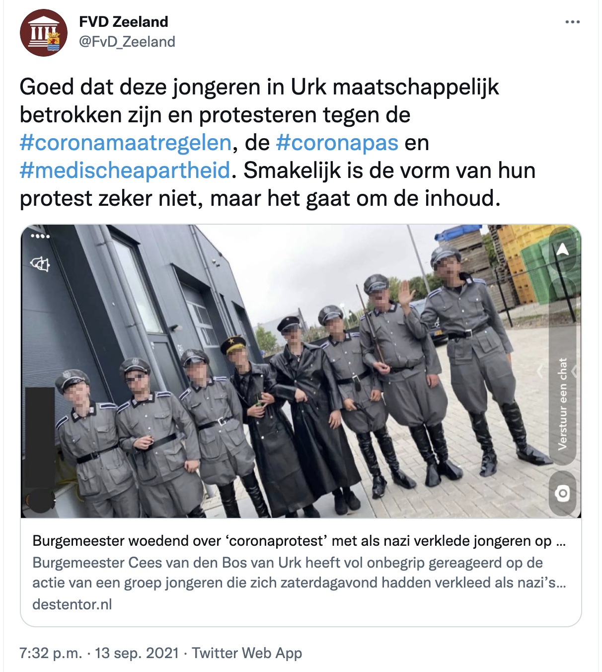 FVD Zeeland: "Goed dat nazi-Urkers betrokken zijn en protesteren tegen coronamaatregelen"