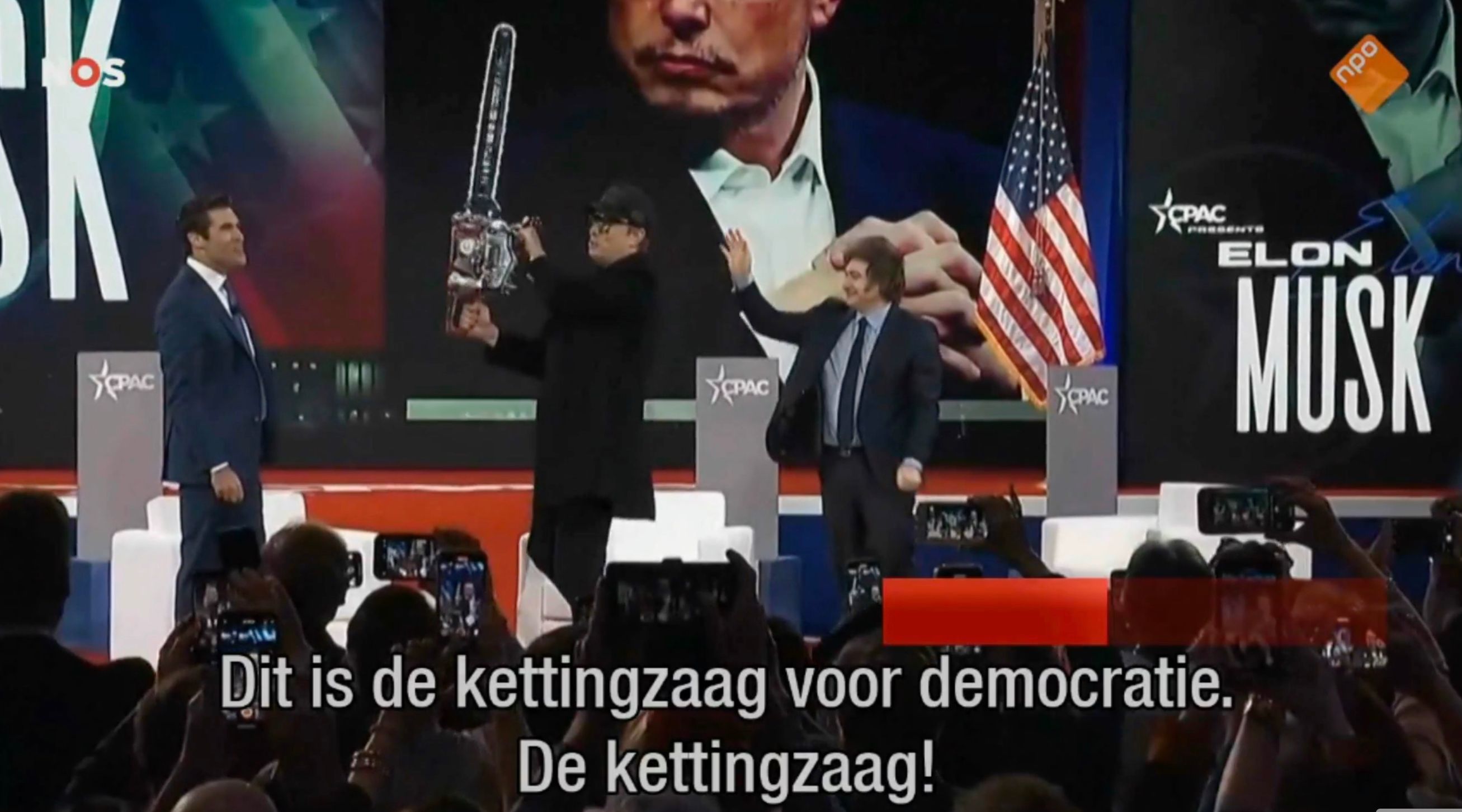 Musk zegt: 'kettingzaag voor bureaucratie'. NOS vertaalt: 'kettingzaag voor democratie'