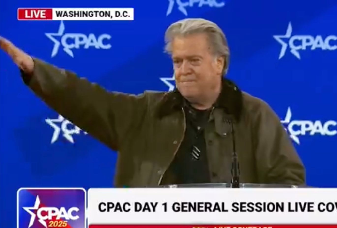 Steve Bannon pleit voor derde ambtstermijn Trump, eindigt speech met """Romeinse groet"""