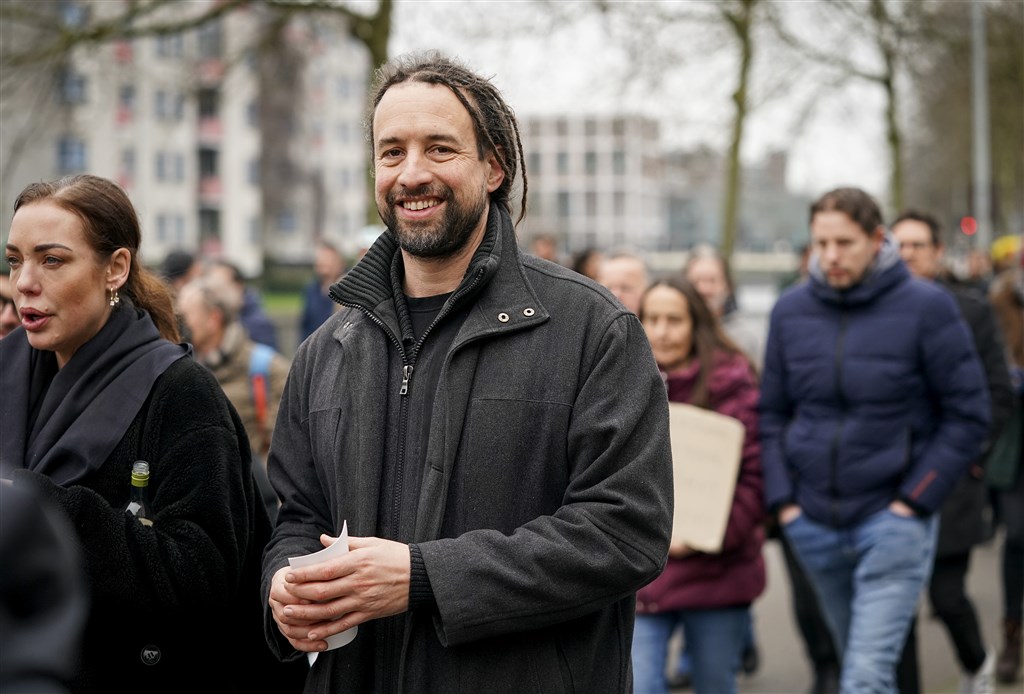 Willem Engel is samen met demonstranten onderweg van het Oosterpark naar het Museumplein tijdens een actie van Nederland in Verzet. De actiegroep protesteert tegen het coronabeleid van de overheid. Met de 'herdenking van de koffieslag' wil de organisatie terugblikken op het afgelopen jaar toen zij vanwege een demonstratieverbod besloten om in protest 'koffie te drinken'. ANP JEROEN JUMELET