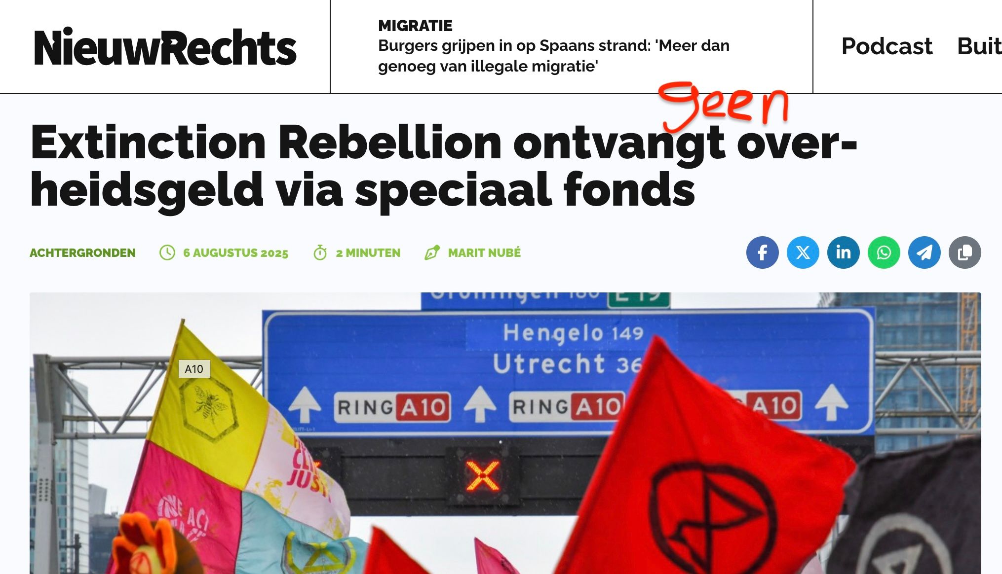 DEBUNK. XR Nederland krijgt geen overheidsgeld uit fonds dat ook niet wordt betaald door BuZa