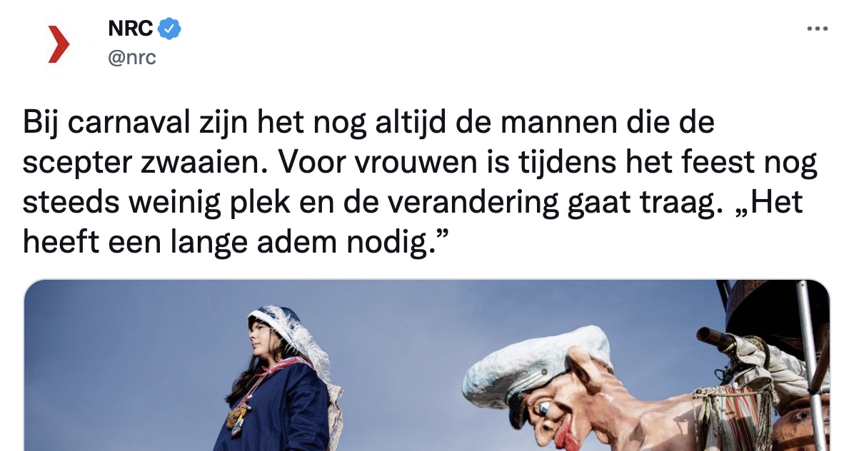 Carnaval = mannenbolwerk en "daar worden te weinig intelligente gesprekken over gevoerd"