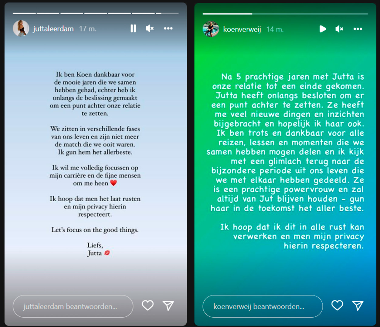 Jutta Leerdam weer vrijgezel (Koen Verweij ook)