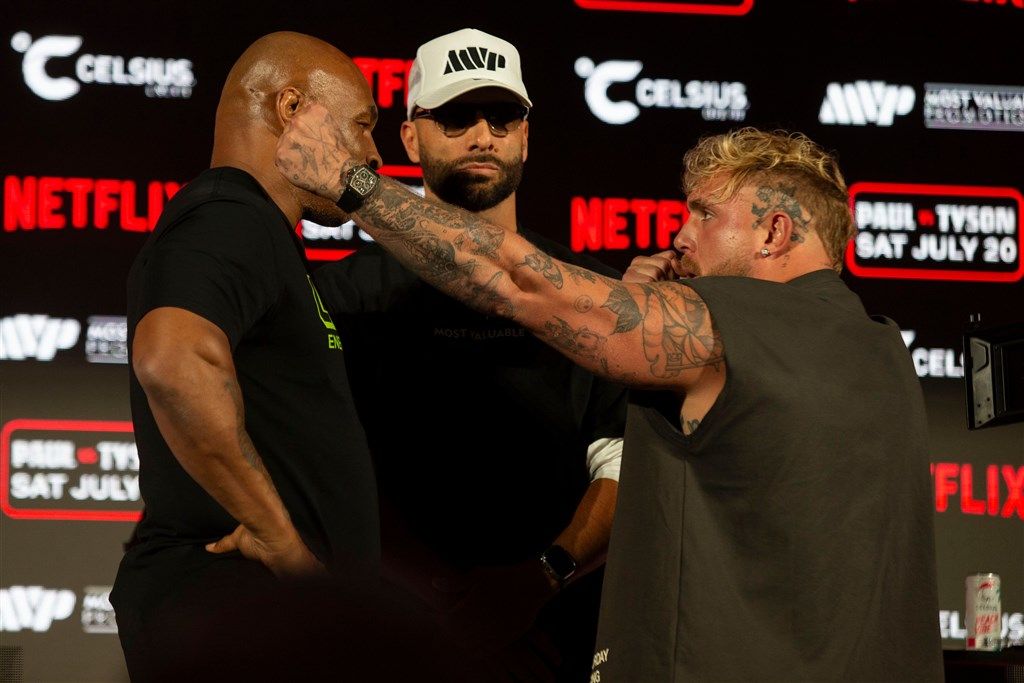 VIDEO: Mike Tyson veel te cool voor staredown met Jake Paul