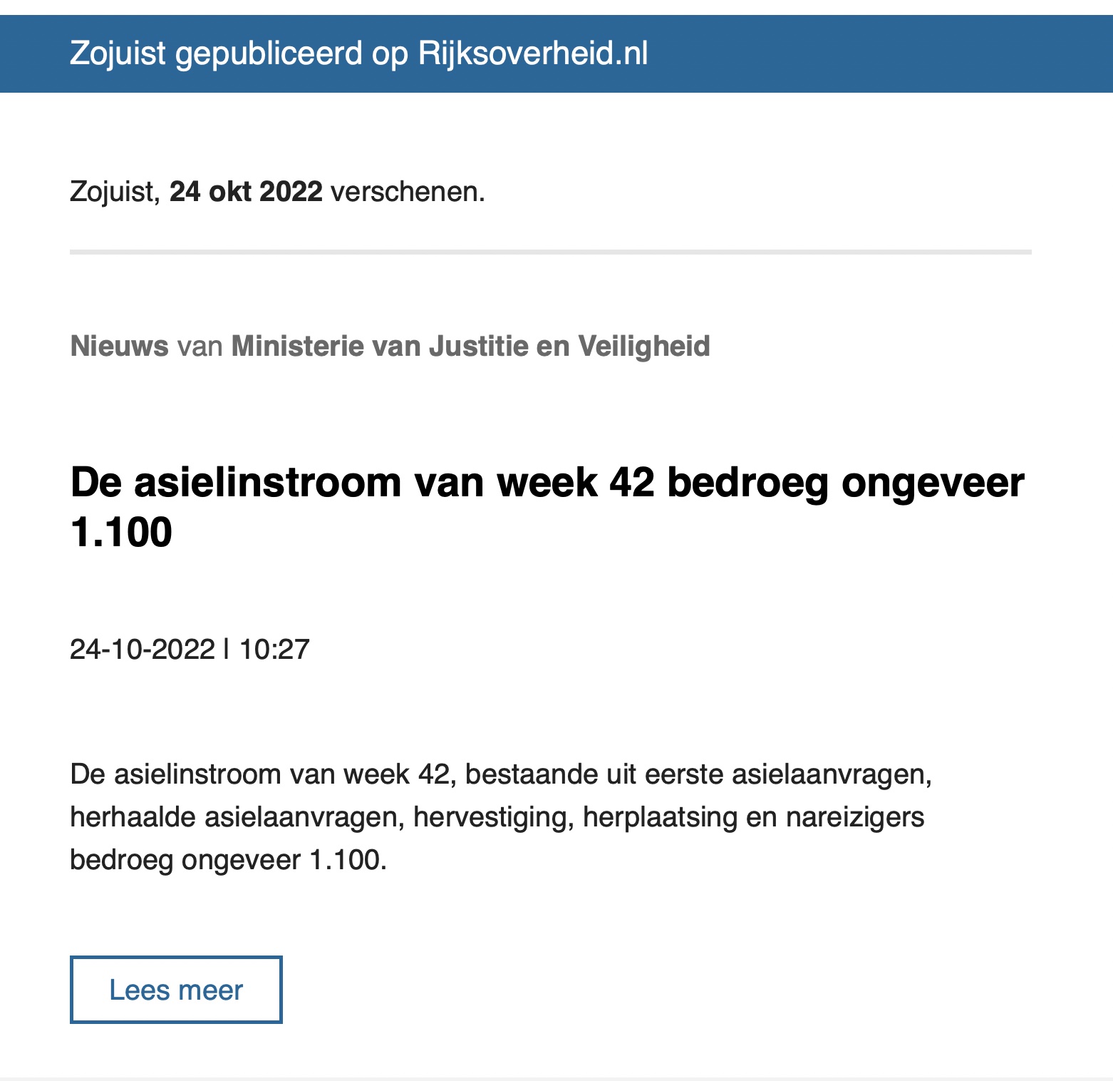 Update: Asielinstroom Week 42 bedroeg ongeveer 1100