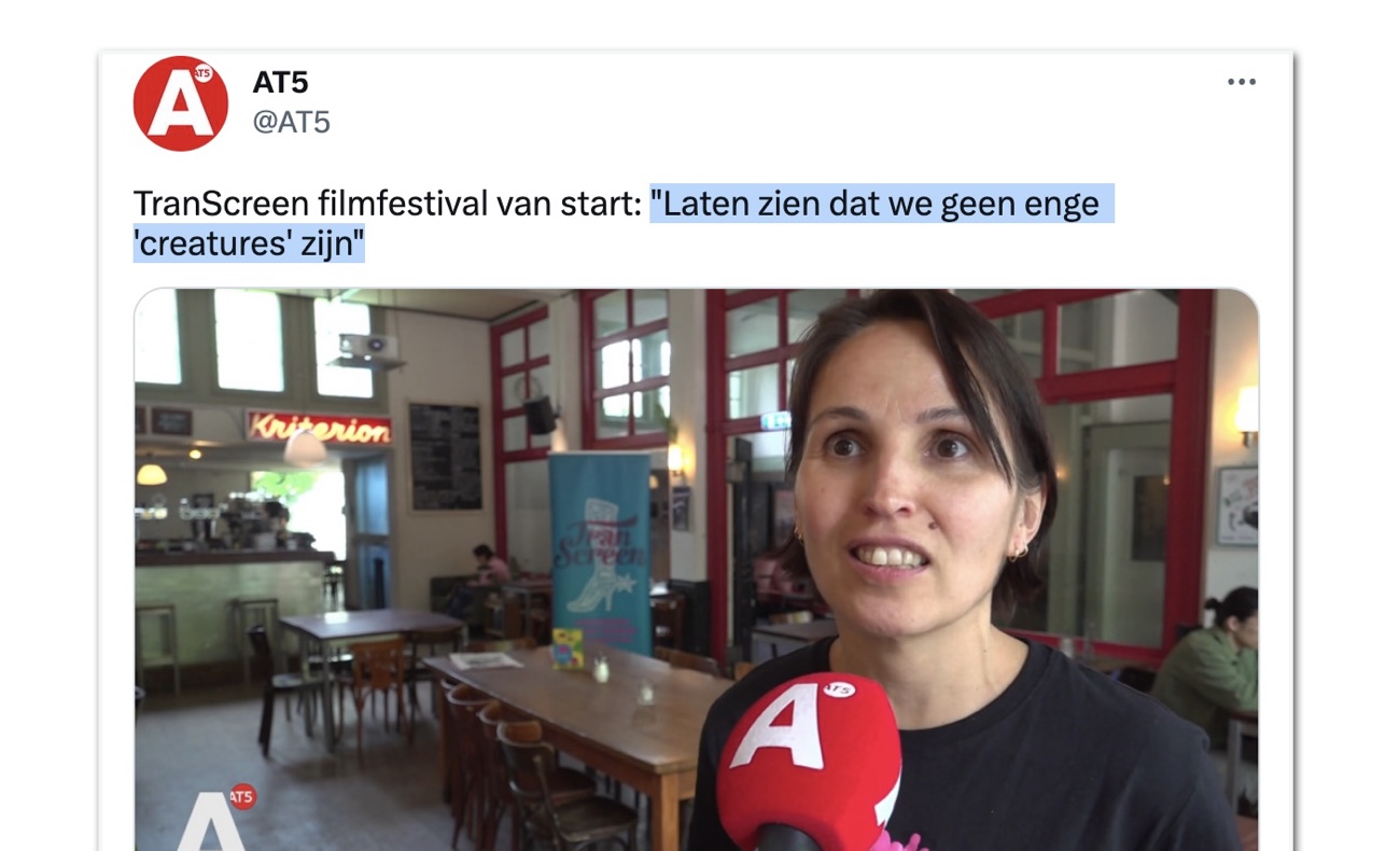 TransScreen filmfestival "Laat zien dat we geen enge creatures zijn". Schat, dat vindt ook niemand