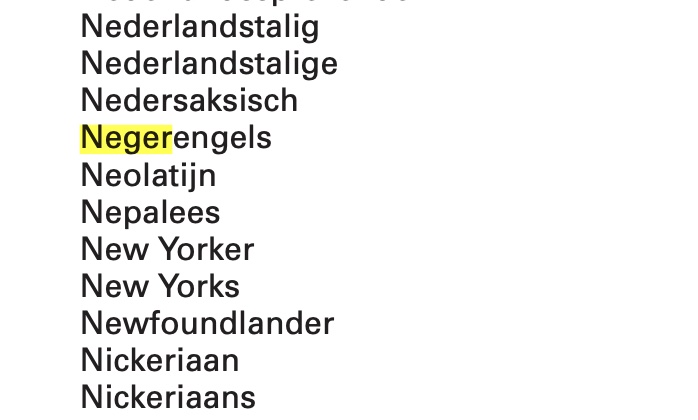 Dus wij op zondagmiddag het woord "neger" opzoeken in de Officiële Bekendmakingen... staat het er gewoon in. In juli 2015 heeft het Comité van Ministers van de Nederlandse Taalunie, en het Ministerie van OCW (destijds Jet Bussemaker, PvdA) een officiële geactualiseerde woordenlijst gepubliceerd waarin het woord "neger" officieel bekend is gemaakt. Het gaat hier om een officiële woordenlijst van 749 pagina's (pdf, 51MB), waarvan op 3 pagina's het woord neger voorkomt. Omdat u op zondag wel wat beters te doen hebt dan 749 pagina's STAATSCOURANT (officiële uitgave van het Koninkrijk der Nederlanden sinds 1814) door te lezen, hebben wij dat maar voor u gedaan. Komen ze: