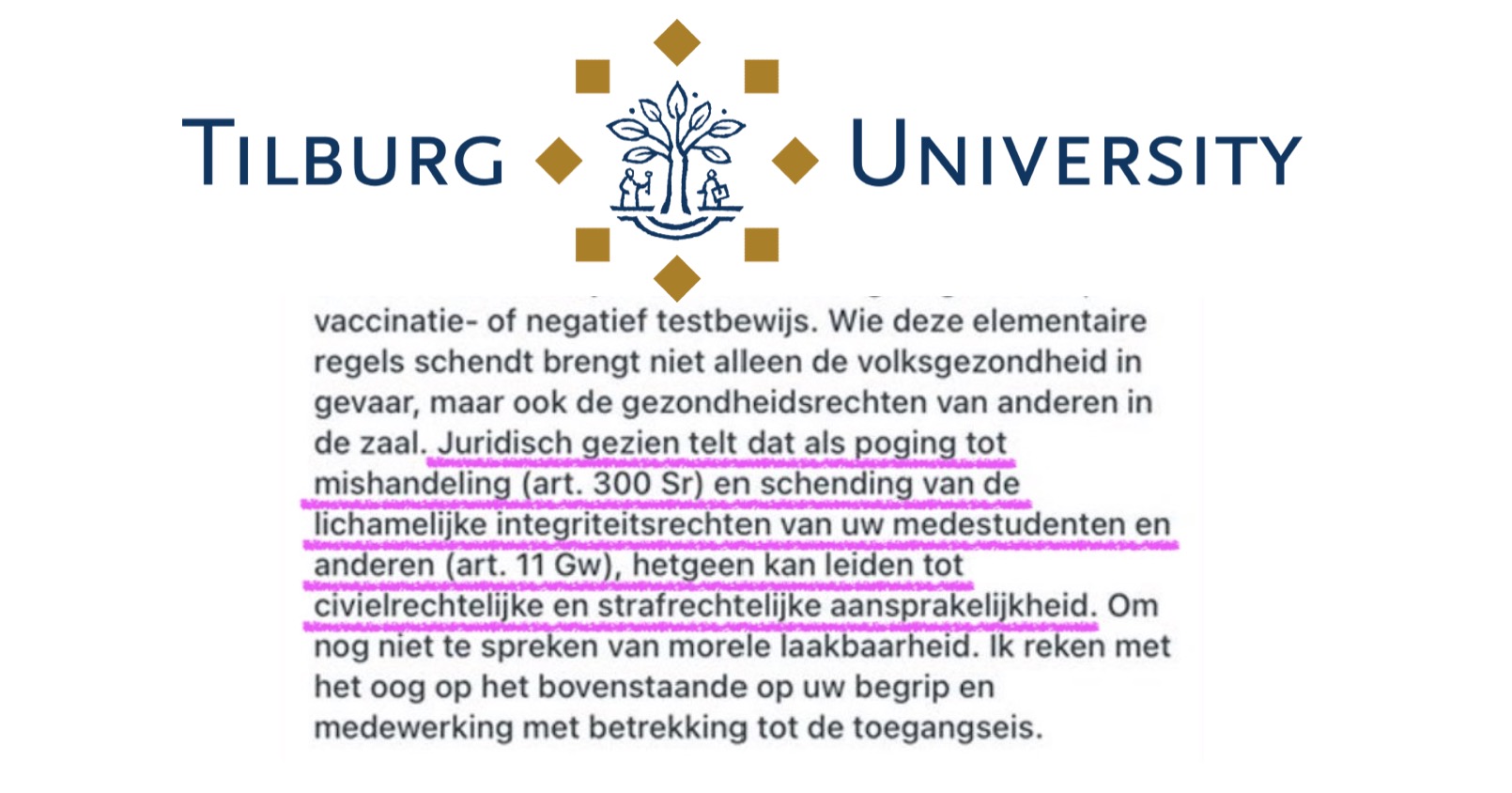 Nieuw op @TilburgU: naar college zonder coronapas = "poging tot mishandeling, strafbaar"