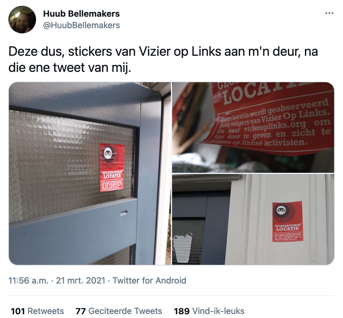 Het is wat minder dombo-agressief dan die sneue trend van het lekprikken van banden maar minder triest is het niet. Een of andere climaclown die als kind in een toverketel jesseklaver is gevallen wijst mensen in Hoorn op hun voetafdruk. "Wie zo'n grote auto heeft moet zich rotschamen!" Dat bepaalt die met stickers bewapende pseudovolkert helemaal niet en bovendien klopt de zin niet. Het moet zijn: "Wie zo'n kleine pik heeft moet zich rotschamen!" En dat gaat dan over die Calimero die in de vroege ochtend stickertjes loopt te plakken. Deed-ie maar een krantenwijk, dan had-ie zelf ook zo'n mooie grote auto kunnen kopen.