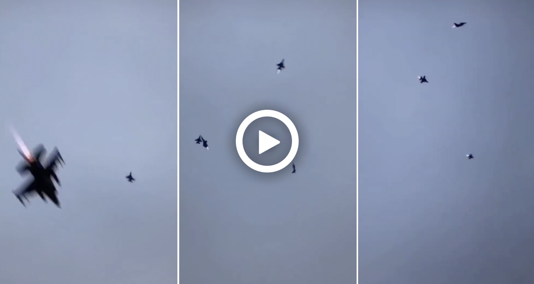 Unieke POV: Russische straaljagerpiloot gebruikt schietstoel na contact met hoogspanningskabel