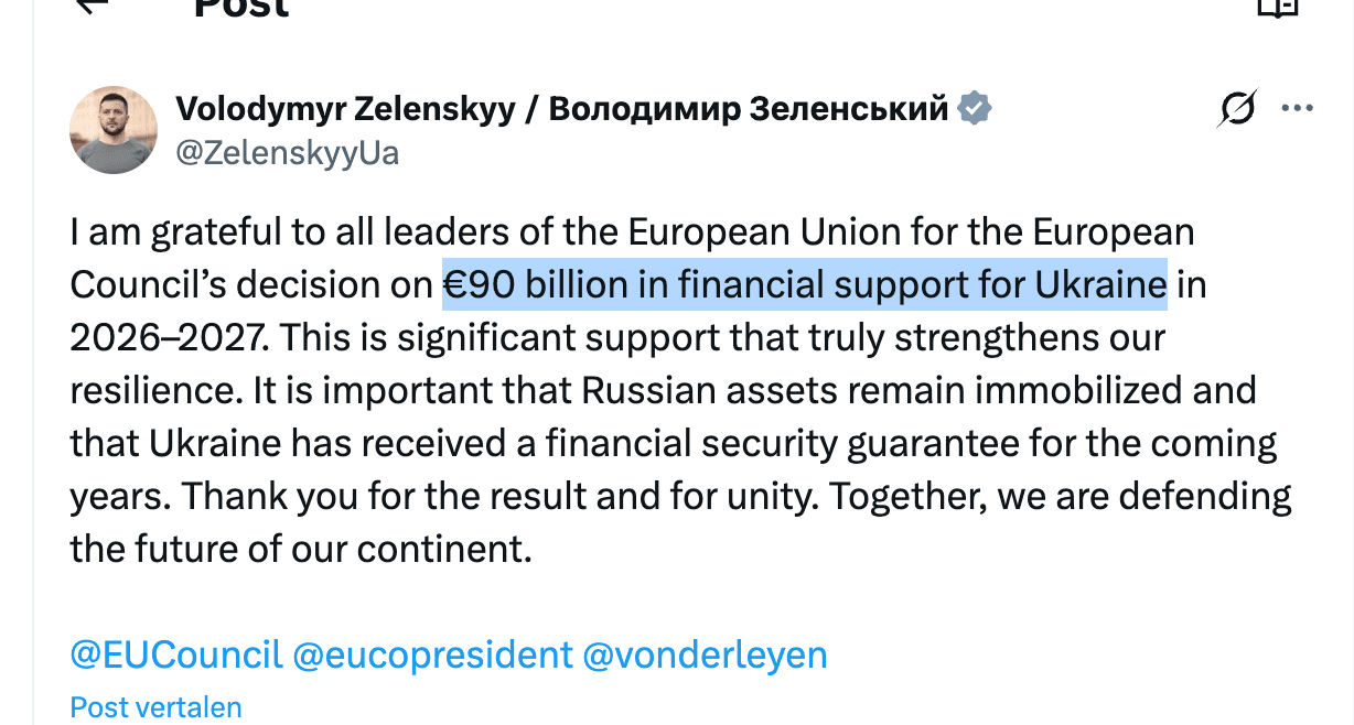 EU leent €90 miljard voor Oekraïne, Russisch geld blijft voorlopig bevroren