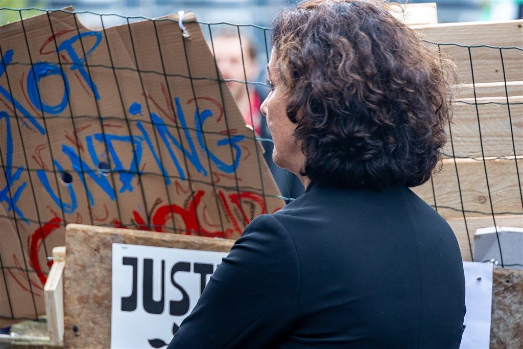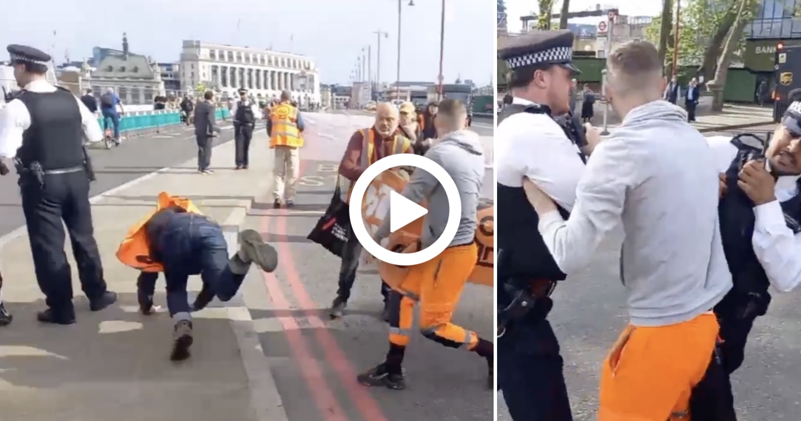 Tijdsbeeld: Arbeider onderweg duwt klimaatlijers van weg, wordt staande gehouden door politie