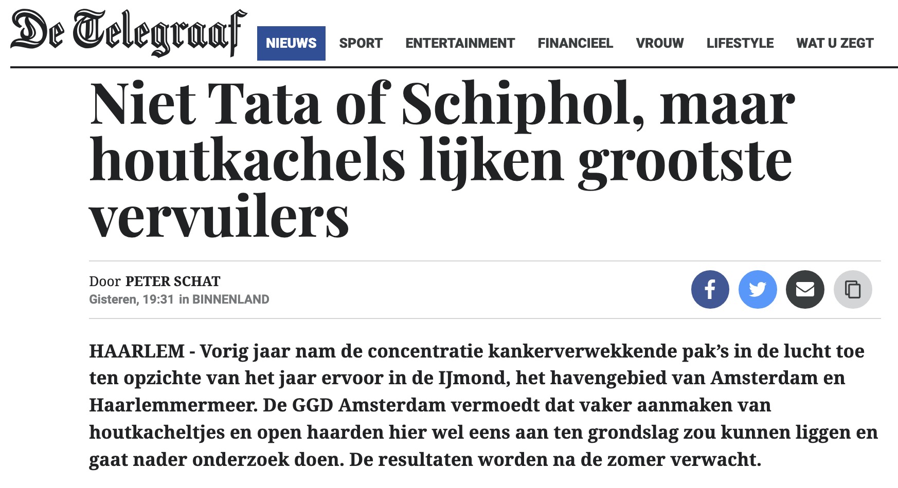 We schrijven Julo 20. De houtkachels branden al ruim anderhalve maand niet meer, het kabinet is gevallen, de boeren doen het goed in de peilings en het is 46,8 graden in Europa. Allemaal de schuld van vakantievierende XR-activisten op Schiphol en de oorlogsindustrie in IJmuiden dat staal moet leveren voor de oorlog in Oekraïne. Ho wacht. Da klopt nie. Die "vervuiling" komt natuurlijk door 1 a 2 miljoen zelfvoorzienende Nederlanders met een houtkachel die er warmpjes bijzitten in de winter. Hebben we u ooit verteld dat zo'n houtkachel een symbool van individualiteit representeert alsook een geloof in persoonlijke vrijheid? Vast wel. Niettemin probeert de anti-stook lobby (lees: de VattenfallMaffia, de EngieKhmer en de EnecoNostra) in het vacuüm van een demissionair kabinet toch nog even een potsierlijk houtkachel-verbod te bewerkstelligen. En het voorheen liberale medium De T. - thansch het door Brussel gedicteerde Mediahuis-vehikel - werkt er maar wat graag aan mee. Trap er niet in. In de fik ermee.