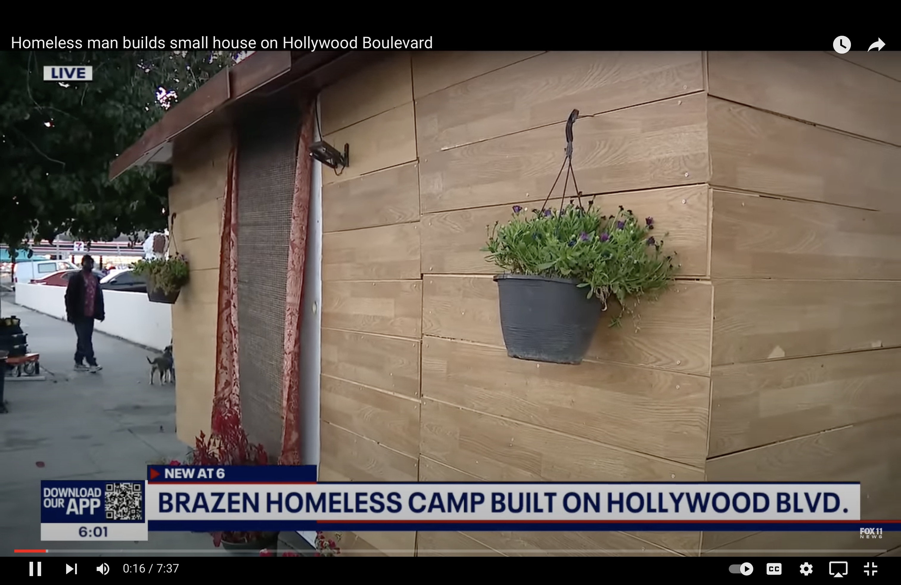 Arme man bouwt tiny house op steenrijk trottoir