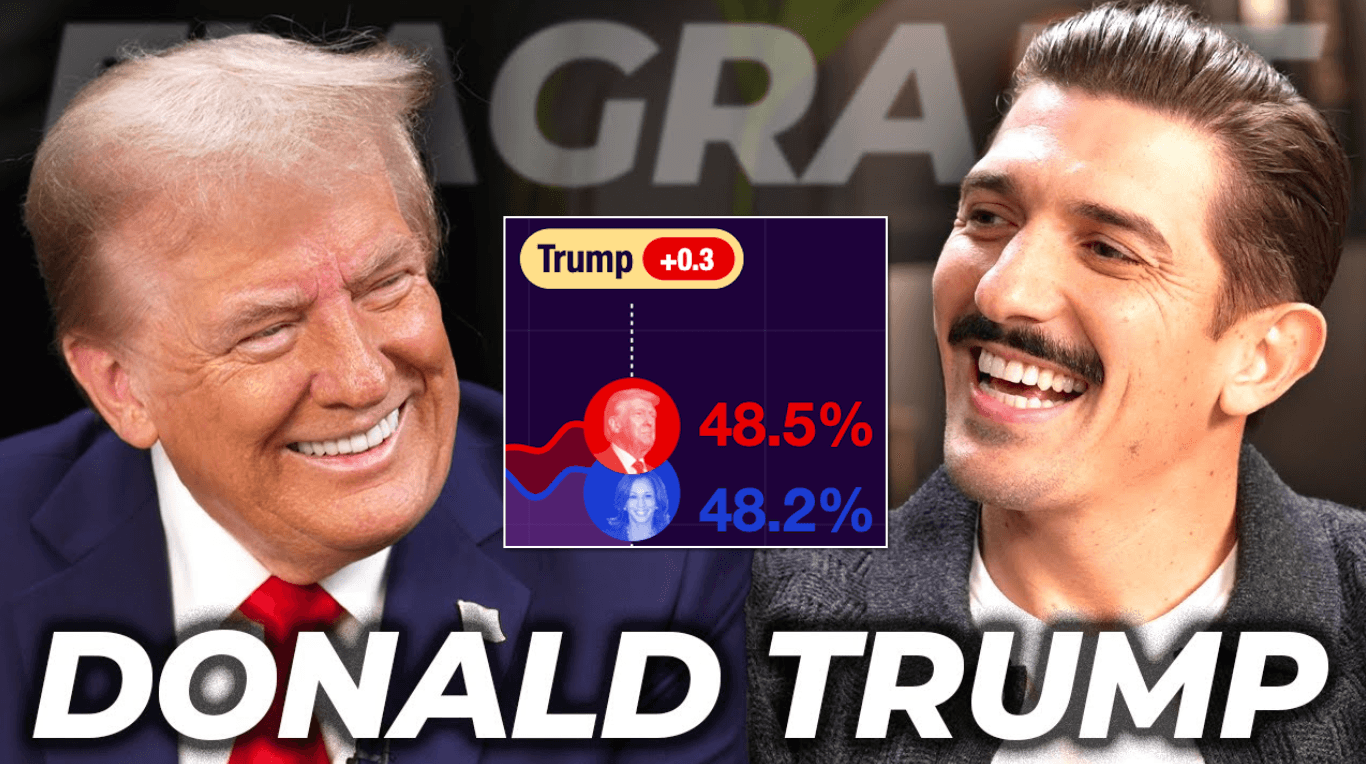 Trump in beste vorm sinds start campagne, 1,5 uur lang bij Andrew Schulz, stijgt opnieuw in peilingen