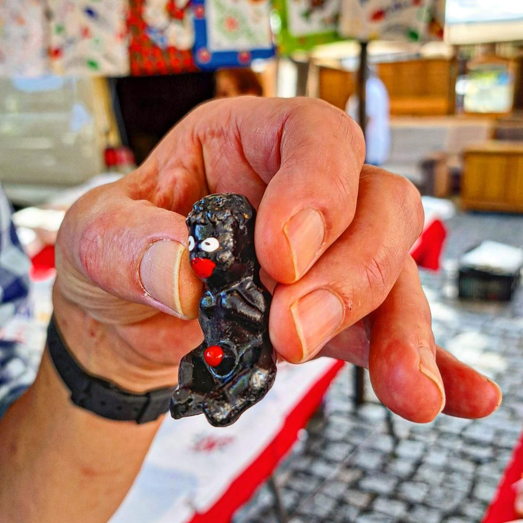 De markt van Barcelos verkoopt duizenden hanen in alle maten en soorten, veel figuratief volksaardewerk, huisvlijt, zigeunermeuk en wat levende have. Je moet er van houden dus. Ik koop een piepkleine pretinho da sorte, een geluksnegertje dat in Nederland allang verboden zou zijn. De zigeuner die ze verkoopt, vertelt een geloofwaardig verkoopverhaal in het Portugees. “Het geluksnegertje is een amulet dat geluk en positieve energie brengt. Ik heb duizenden tevreden klanten, meneer. Die bewaren het in hun portefeuille, in de auto, in huis, in de kinderkamer etc en het kleinood is bovenal goed voor uw vruchtbaarheid. U krijgt er net als ik mooie kinderen van als u het amulet ‘s nachts onder uw matras legt.”