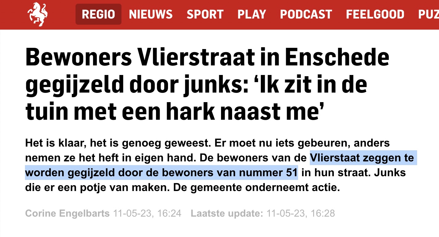 Complete Vlierstraat Enschede gegijzeld door Junks. @D66: "En ze wonen op nummer 51"