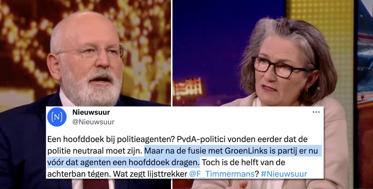 VIDEO. Frans Timmermans wil écht heel graag hoofddoekjes bij de politie, krijgt live tegengas