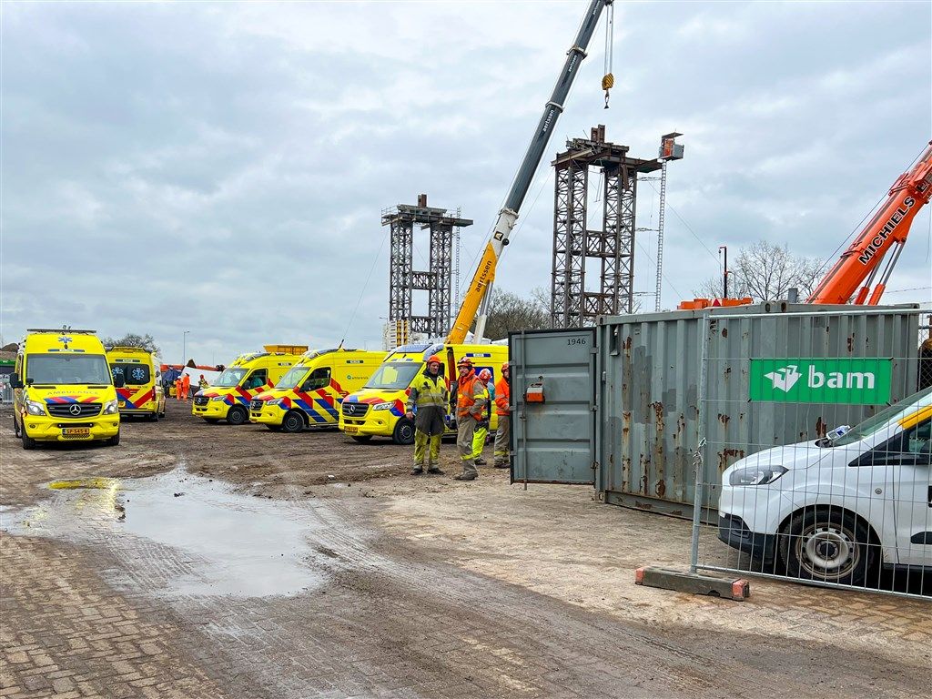 UPDATE: "Tenminste één persoon wordt gereanimeerd", meldt de veiligheidsregio bij RTL Nieuws. "Tenminste één andere persoon zit bekneld in het bakje van de betrokken kraan."