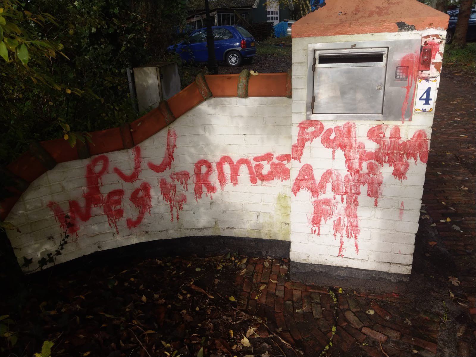 Tuig bekladt huis met "KK MOSLIMS verboden", "DOOD!", "666" en "WP" (White Power)
