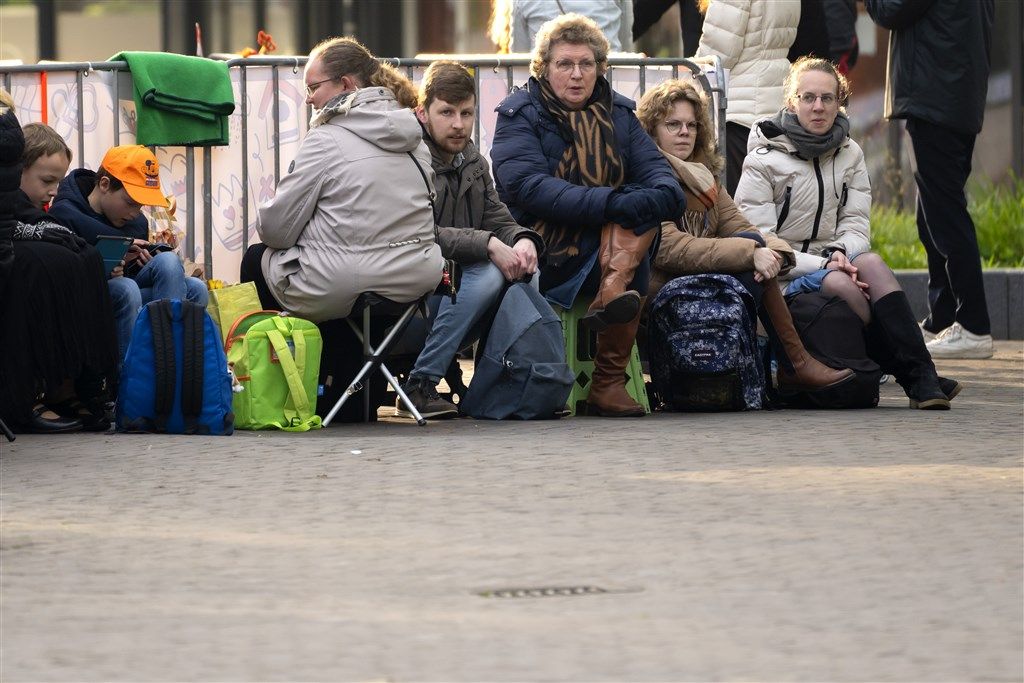 EMMEN - De eerste oranjefans hebben een plek ingenomen langs de route die de koninklijke familie aflegt door het centrum van Emmen. ANP SANDER KONING