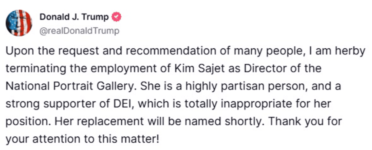 Trump dumpt Nederlandse pro-diversiteitsdirectrice National Portrait Gallery
