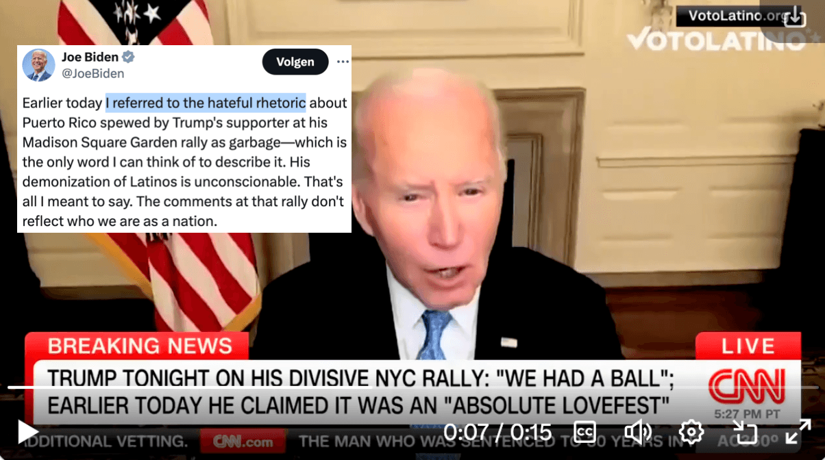 President (?) Biden noemt alle Trump-stemmers "garbage", Witte Huis ontkent