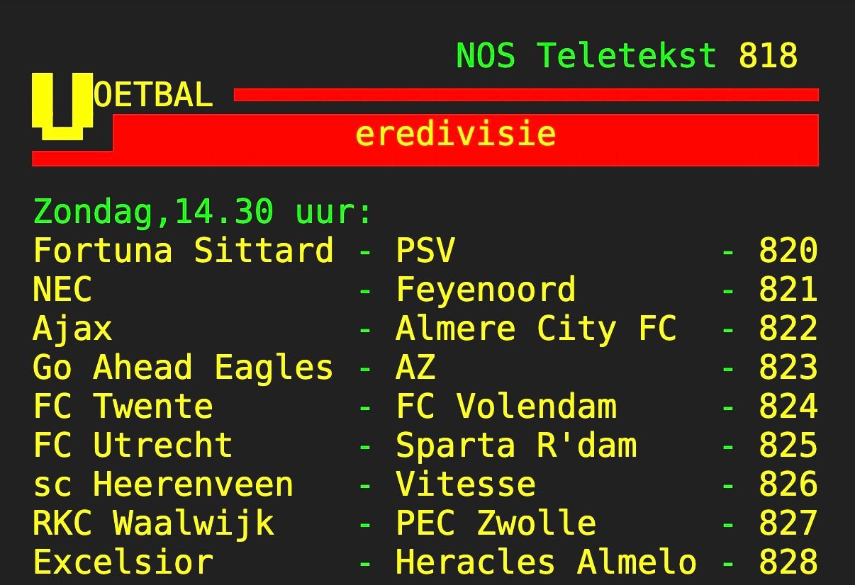 Wist u dat de sportredactie van GeenStijl 2 x per jaar naar NOS Langs de Lijn luistert? Dan weet u dat nu. Op Speeldagen 33 & 34 van onze nationale Calimero Competitie Primera Division, als alle clubs op hetzelfde tijdstip spelen ipv die commercieel uitgesmeerde weekendmeuk vanaf donderdag voor de kijkcijfers. Allemaal foeballe om 14:30 uur, dan krijg je radio zoals radio is bedoeld, met knotsgekke onderbrekingen, hysterisch heen- en weer geschakel van Amsterdam naar Deventer, kudtmuziek die wordt weggedraaid, TeleTekst 818 en sportverslaggevers die eindelijk eens aan het werk moeten. Probeer het eens uit, het is echt awesome: LIVESTREAM