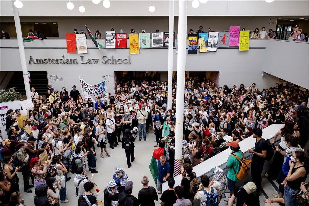 Het is weer ongezellig bij de studenten in de hoofdstad. Uit solidariteit met Gaza was daar vanochtend ineens de 'national walk-out' en nu hebben honderden UvA-studenten en -medewerkers zich gebarricadeerd in het hoofdgebouw van de universiteit op Roeterseiland. Ook in Nijmegen, Eindhoven en Groningen hebben betogers zich met tentjes in en om universiteitsgebouwen verschanst.