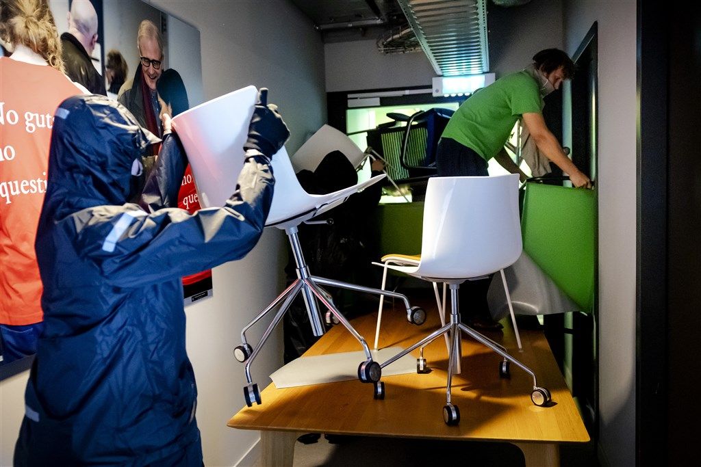 UPDATE 15u05: Aanwezige media worden door bezetters gedwongen het gebouw te verlaten, "Ondertussen worden cameramensen die verslag proberen te doen van de bezetting het zich ontnomen met vlaggen en doeken." Media die niet snel genoeg vertrekken hardhandig weggewerkt.