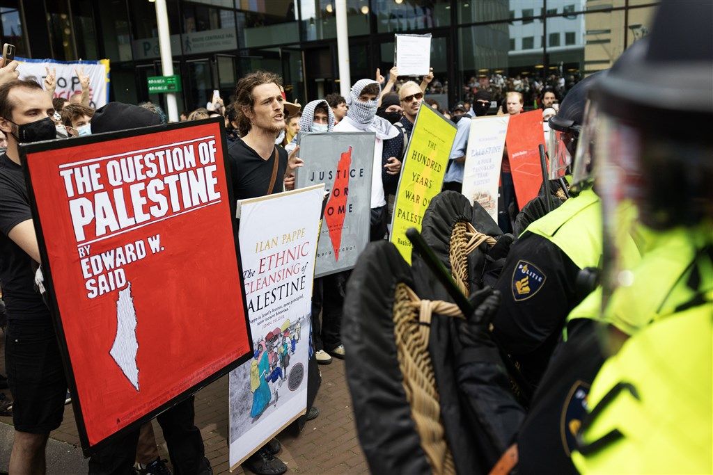 UPDATE 16u07: Reporter Step Vaessen van Al-Jazeera deed zojuist een gezellig stand-upje tussen de "viva intifada" roepende bezetters. Pers ook weggedreven bij bezetting in Groningen, zionists not welcome aldaar.