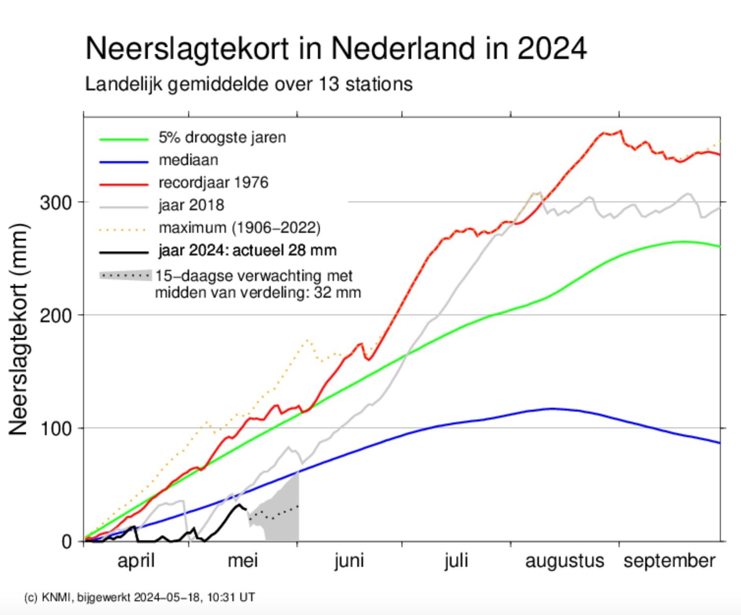 Die arme droogte-redacteuren aan de klimaatredactietafels van Nu, Trouw, Volkskrant, NRC en RTL (155 fte). Ze hebben niks te doen! Want kletsnat. Want zwarte lijntje wil maar niet boven die blauwe. Want Limburg! Vorig jaar begon in mei een langdurige droogteperiode die tot ver in juni aanhield. Maar nu is Nederland zo nat als Bridget Maasland op een vrijdagavond. En het wordt nog veel natterder, anders beuken ze geen ZES MEGAPOMPEN (grootste van Europapa) in de Afsluitdijk. Na de break een tragische foto van een overlevende van de watersnoodramp bij Etenaken (L) & de vooruitzichten voor woensdag: spoiler we krijgen een WATERBOM!