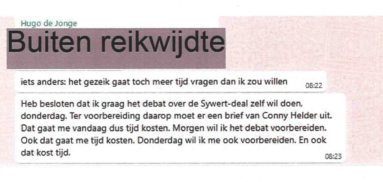 DOE ZELF ONDERZOEK. 12 pagina's appverkeer tussen Jaap van Dissel en Hugo de Jonge