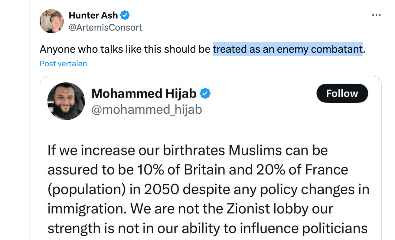 Voornaamste Brits-islamitische influencer Mohammed Hijab mengt zich, enige correcte aanduiding "enemy combatants" schiet wortel