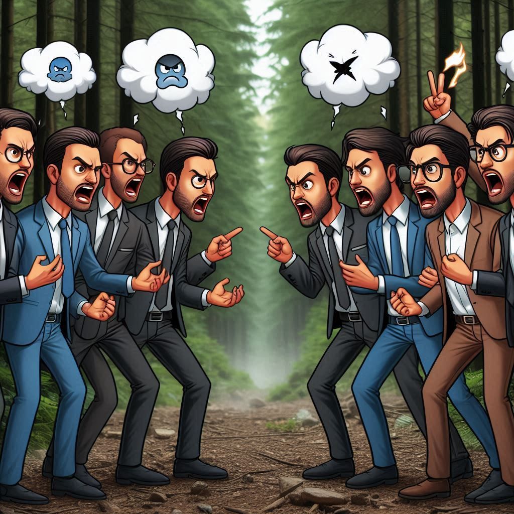 Foto: ruzie tussen twee groepen asielzoekers, geïllustreerde weergave