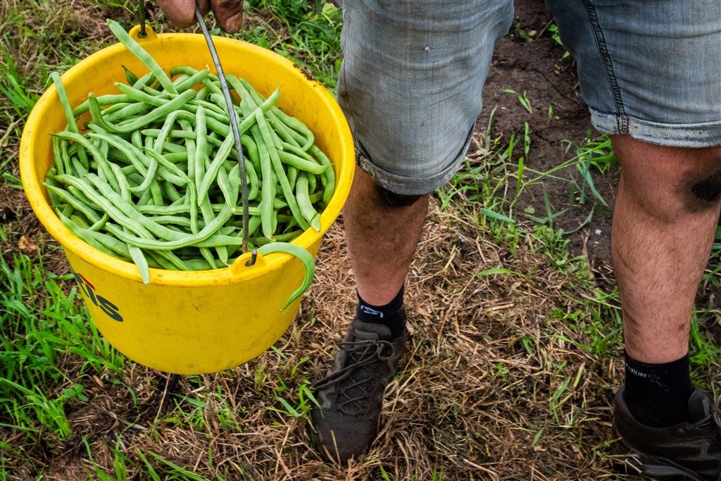 Blanke man in korte broek met sperziebonen - heel Mediavaert walgt
