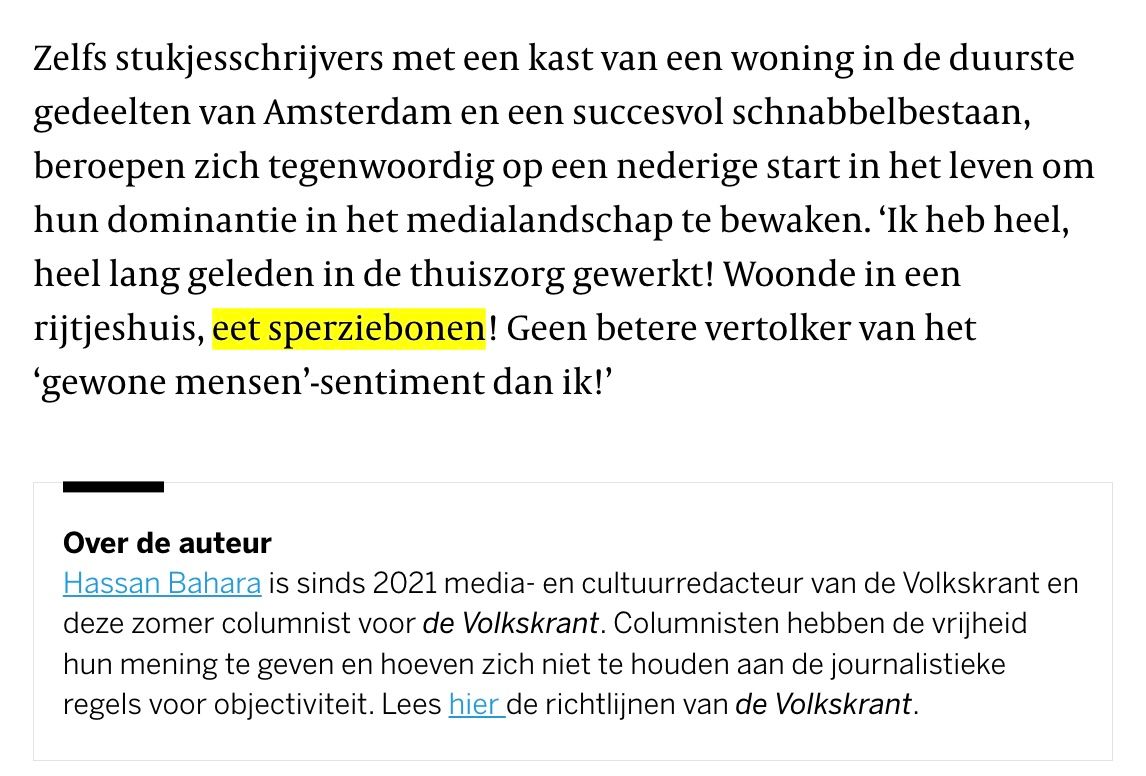 Hassan Sahara vandaag in de Volkskrant, de krant met volks in de naam, maar die dat allang niet meer is, sterker nog... ZE HATEN HET VOLK, dat smerige blanke hetero-volk, dat 2 x per jaar het vliegtuig naar Gran Canaria neemt, BAH! Zo kotsen ze bij de Volkskrant ook op sperziebonen-eters. Walgelijk volk, die sperziebonen-eters, gadverdamme, dat plant zich maar voort in die Vinexwijken, als konijnen! En de allerergste sperziebonen-eter is EVA HOEKE, en die woont geeneens in een Vinex-wijk, maar in "een kast van een woning in het duurste gedeelte van Amsterdam" (Vintage Tennisbaan, Watergraafsmeer - meer zeggen we niet). Hassan Sahara vond zijn sperziebonen-grap zo geslaagd dat-ie m nog een keer maakte. Na de break allemaal foto's van sperziebonen. Om reclame te maken voor een fantastische Hollandsche groente als De Sperzieboon (nooit die Marokkaanse kopen, die zijn goor). En om pastinaakkanende Volkskrant-medewerkers TOT OP HET BOT te krenken, tot in het diepste van hun ranzigriekende elitieziel