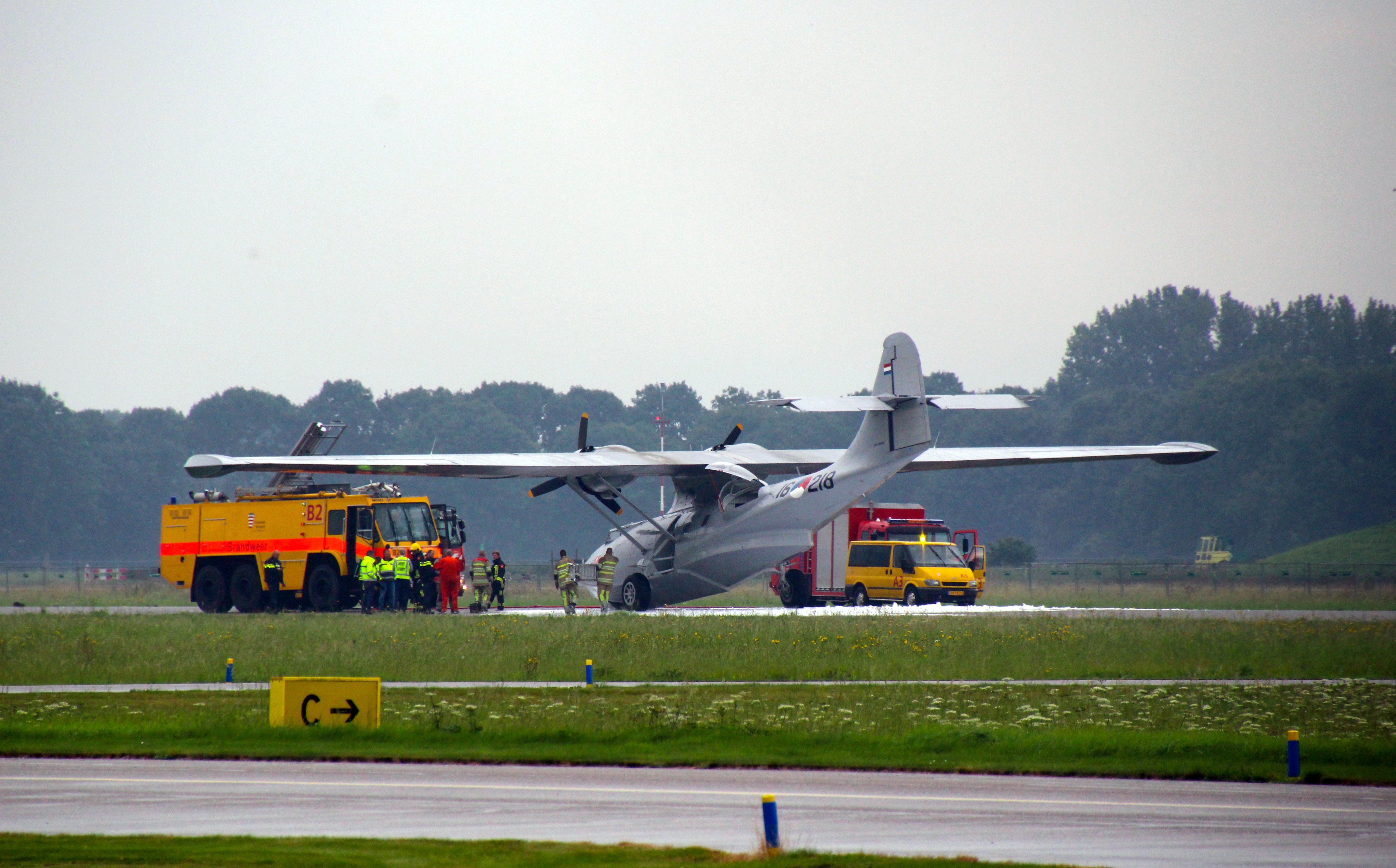 Jongensboekspul! Klassieke Catalina maakt noodlanding, brandweer springt bij